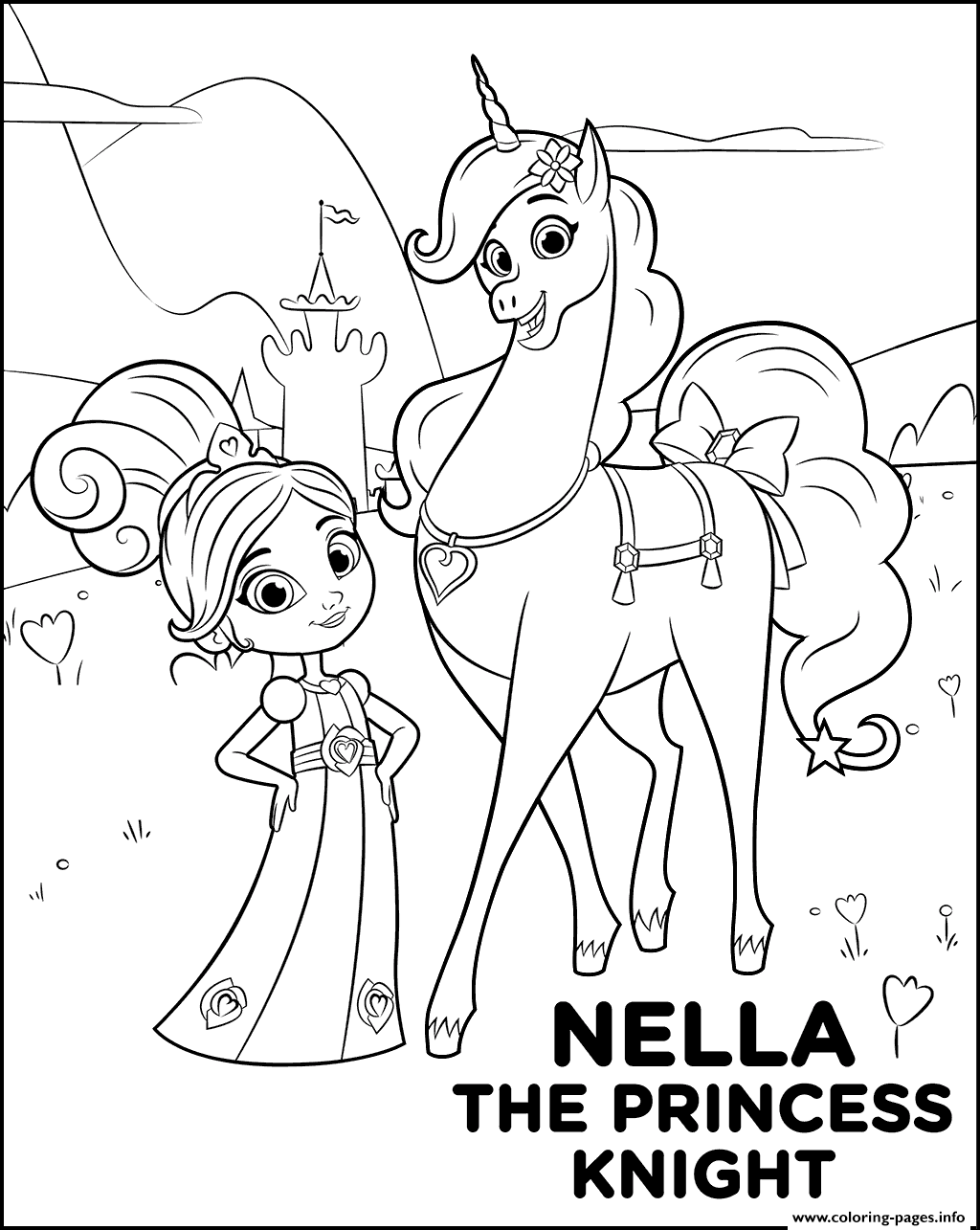 - דפי צביעה חד קרן נלה הנסיכה האבירה
